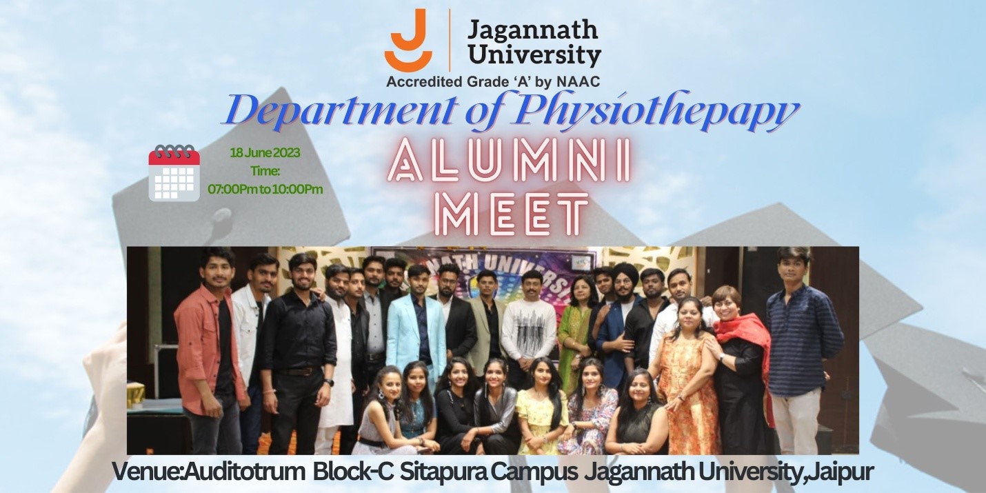 Alumni meet "where dreamers meet doers", alumni meet is the event where colleges call all passed out students and let them interact with each other. It is not only about maintaining a good relationship or connection with the passed-out students but also the alumni meet makes an institute feel proud of its alumni. Alumni meet 2022-23 was conducted by Department of physiotherapy, Jagannath University, Jaipur on 17th June 2023.